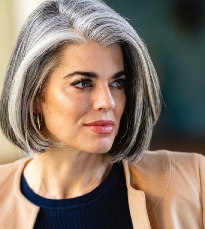 Волосы цвета соли и перца на женщинах старше шестидесяти лет выглядят потрясающе. Густые пряди светло-серых волос на контрасте с темными придадут вам интересную изюминку, с которой будет сложно конкурировать любому сочетанию оттенков. Выбирайте стильную прическу с прямыми волосами, а также слегка загнутыми под низ кончиками. Боковой или центральный глубокий пробор добавит шарма и эффектности.
